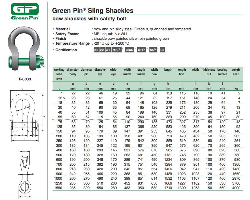 The Green Pin®吊環BN是一款具有安全螺栓和固定螺母的高負荷能力弓形吊環。由于吊環冠部的形狀,吊環BN是重型起重項目的理想選擇。與標準的綠針®重型吊環相比,吊環的弓形半徑增加,提高了您的吊索抵抗磨損的能力,并使您能夠使用較輕的鋼絲繩來提升相同的重載。這意味著通過使用The Green Pin®吊環BN,您可以節省鋼絲繩成本(然而,The Green Pin®強力吊索的吊環提供了更大的節省)。該吊環還提供雙重安全(開口銷和安全螺栓),防止銷釘意外松動。當然,The Green Pin®吊環BN的電鍍確保了其長期耐用性。還有廣泛的認證可供選擇:例如,75噸及以上的綠針®吊環BN包括勞氏公司的證明負荷測試證書。The Green Pin®吊環BN的工作負荷限制范圍從7噸到1550噸。
